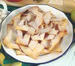 Lasciare riposare l'impasto per circa 1 ora. Dopo stendere la pasta e ritagliare delle striscie con un taglia-pasta. Friggere in olio caldo e servire a tavola spolverando le "Chiacchere" con lo zucchero a velo.