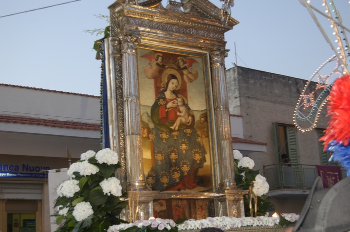 L’immagine della Madonna viene portata in processione su spalla dal ceto dei muratori, dal luogo dello sbarco fino al santuario. Una tappa importante è la benedizione al pozzo della Madonna, a pochi metri dal santuario, dove la leggenda vuole che i buoi si fermarono per la stanchezza e lì zampillò dell'acqua. La fiaccolata richiama una moltitudine di fedeli devoti alla sacra immagine.